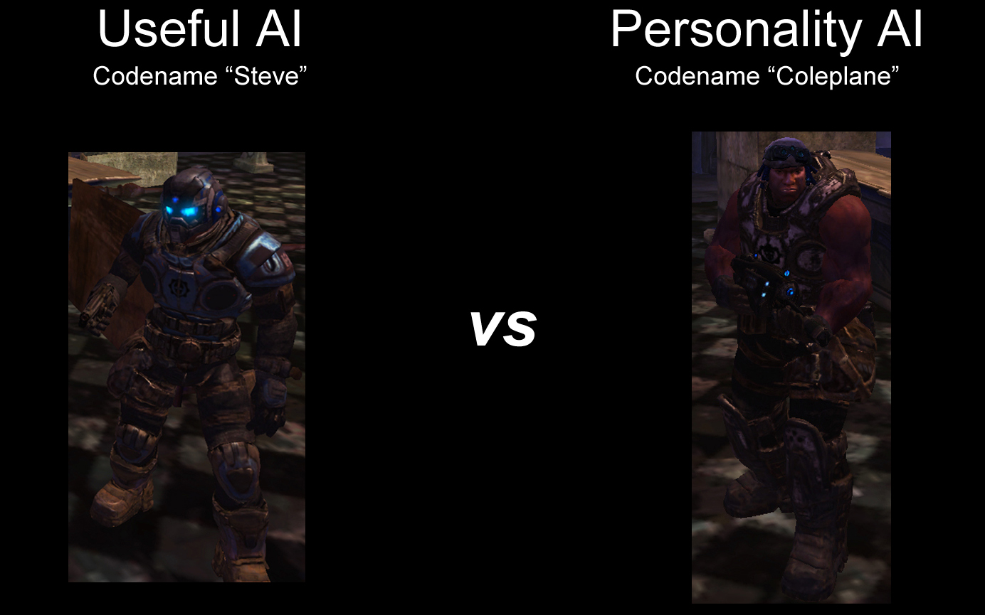 I built a map in Gears of War with five rooms. Each room consists of a unique combat challenge and a cooldown moment afterwards. The two AI units each have specific actions that they'll take during each combat challenge and each cooldown moment.