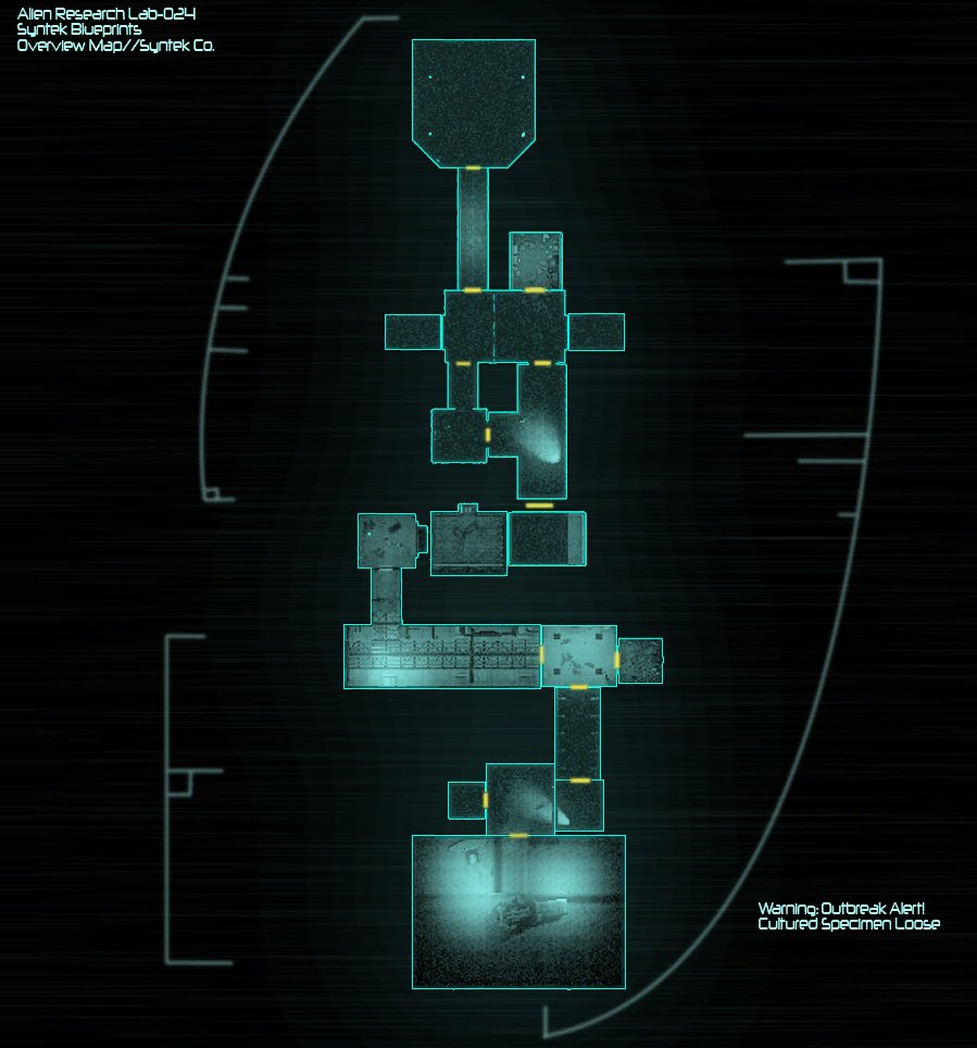 I sketched out a two floor lab and converted the map in Photoshop to the in-game map system.